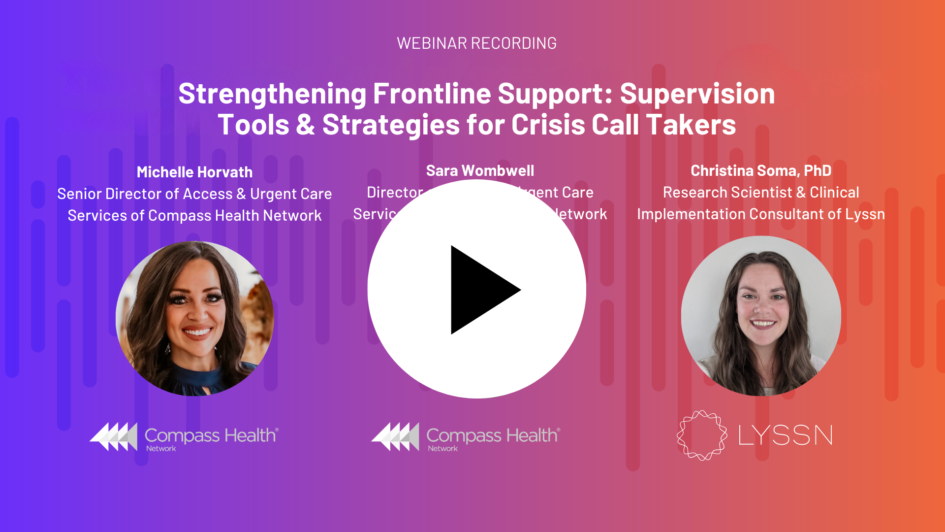 Join us for a 45-minute webinar featuring Compass Health Network, where we’ll explore how one crisis call center implemented Lyssn’s AI tools to level-up their workforce.